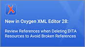 This is a short video for one of the new features added in Oxygen XML Editor 28, showing that with the Main Files feature enabled for a DITA project, when attempting to delete a resource, you have the ability to review the list of resources where the item is referenced to prevent broken references.