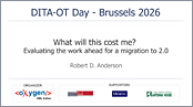 Kris and Robert will discuss the long term future of DITA-OT: what can we all do to ensure the continued health of this critical piece of the overall DITA infrastructure?