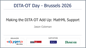 This talk introduces Jarno Elovirta’s DITA-OT Markdown plugins, which extend the DITA Open Toolkit so you can use Markdown files directly in topic references and export existing DITA content in Markdown format for use in other publishing systems. This makes it easier for people to contribute content to DITA publications, enables mobile authoring workflows, facilitates review processes with less technical audiences and expands the range of publishing options to workflows based on Markdown.