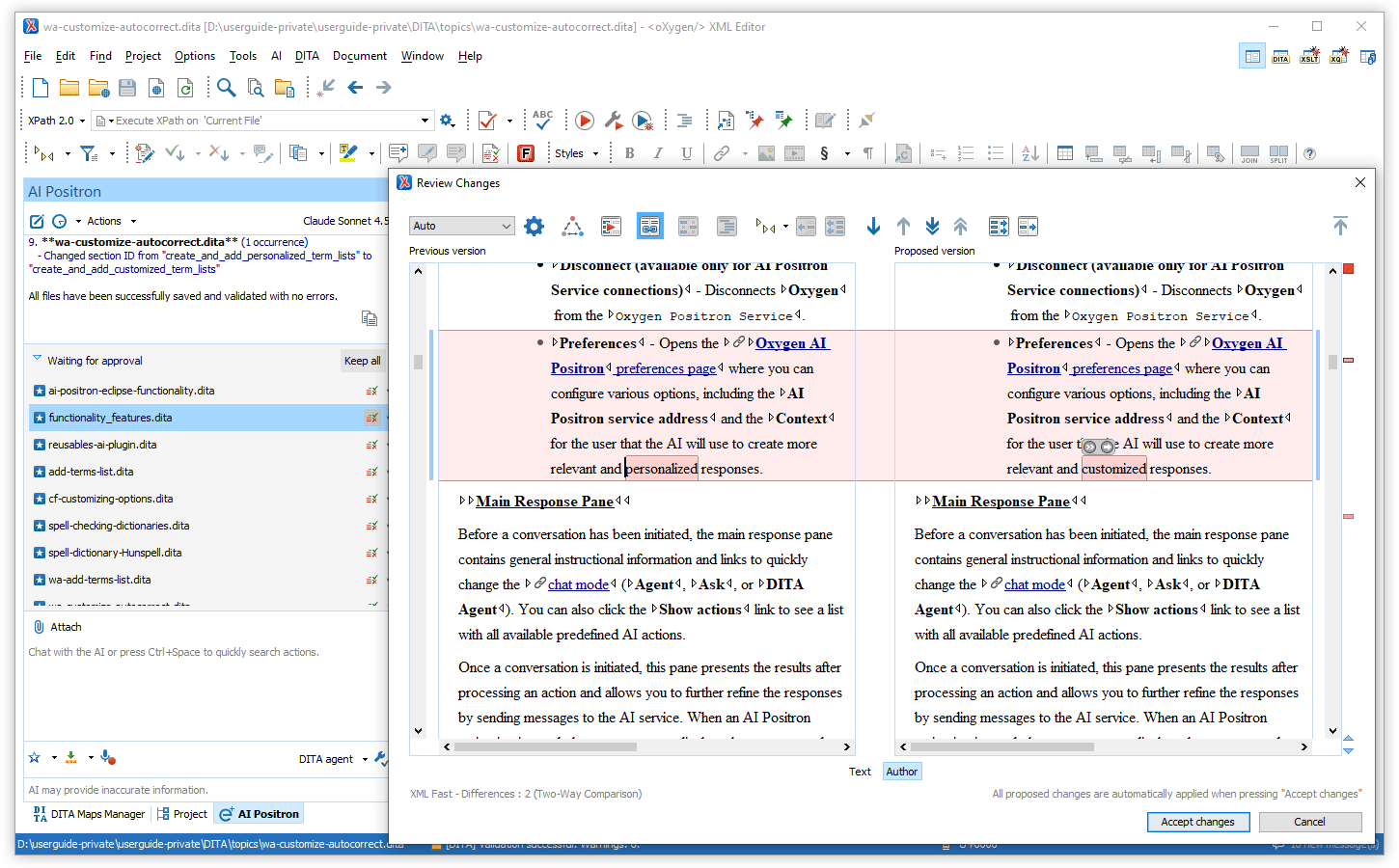 custom actions. In the Oxygen AI Positron Assistant preferences page, you