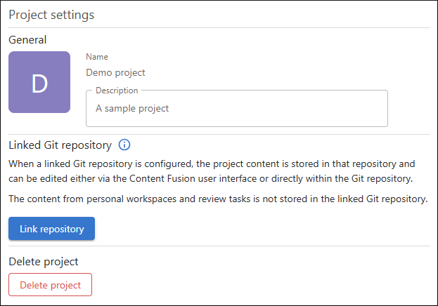 - If the project is imported from a Git repository, that repository is automatically linked.