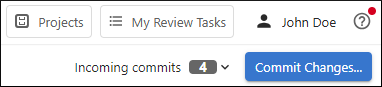 Once inside the project's personal workspace, the left stripe contains navigation options to open the various project management pages. On the right side of the second top stripe, an Incoming commits widget shows if there are incoming changes and you can click the drop-down to display more information and access additional actions.
