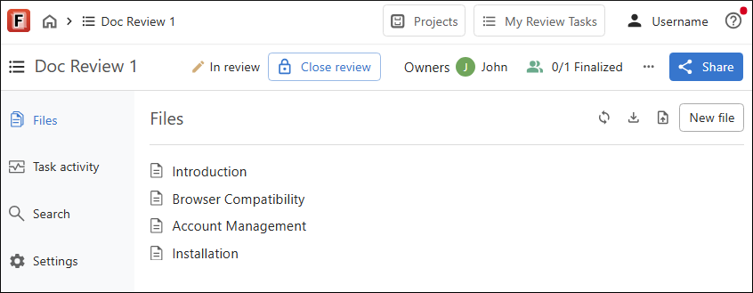 when adding content to a new file. - The next logical step would most likely be to share the task with anyone you want to review the documents.
