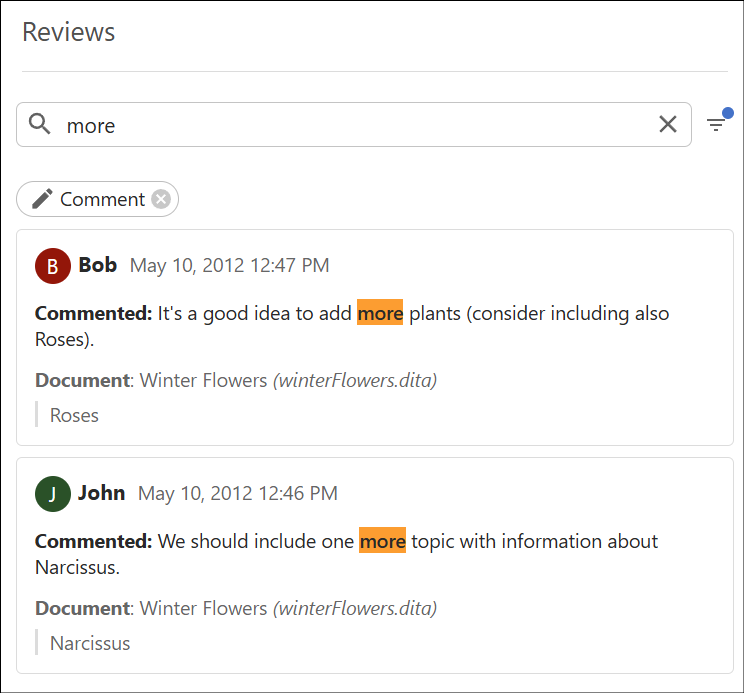 - Type - The type of review item (for example, comment or highlight). Default: All.