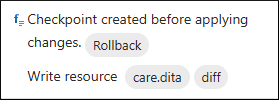 - Rollback changes - You can revert all changes made after a checkpoint by clicking the Rollback action to the right of the particular checkpoint.