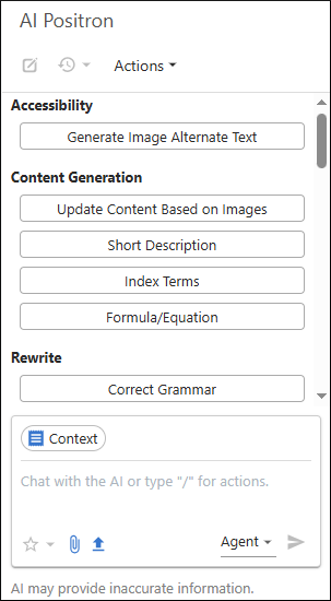The following AI-powered actions are available in the Actions drop-down menu at the top of the AI Positron pane: