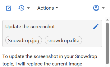 - Analyze and Update Topic - This action analyzes and optimizes your DITA topics to ensure modularity and consistency. It reviews and updates the topics to align with the DITA standards, generates new topics, and updates the DITA map as needed.