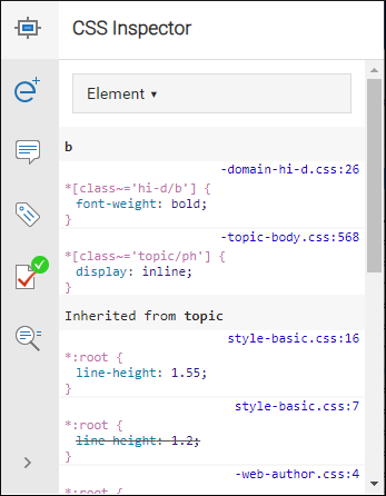 The last element listed in the breadcrumb is the element at the current cursor position. The last element also is highlighted with a blue background for easier identification.