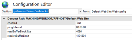- Select system.webServer/webSocket in the Section text box.