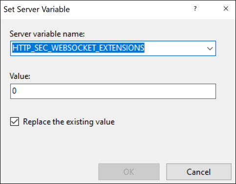 HTTP_SEC_WEBSOCKET_EXTENSIONS. - A server variable must be added in Web Author's proxy