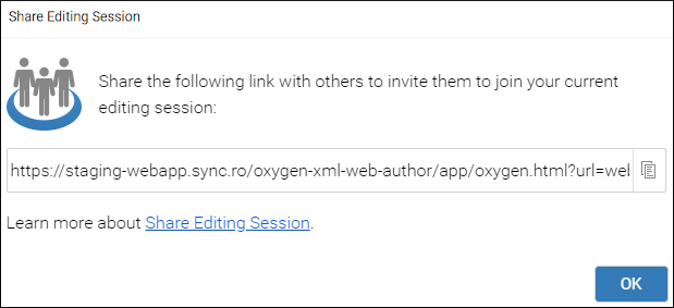 Oxygen XML Web Author offers a feature that provides the ability for authoring teams to edit and review content concurrently. You can share your editing session and then send a link to other collaborators and then you and your colleagues can edit and review the same document simultaneously.
