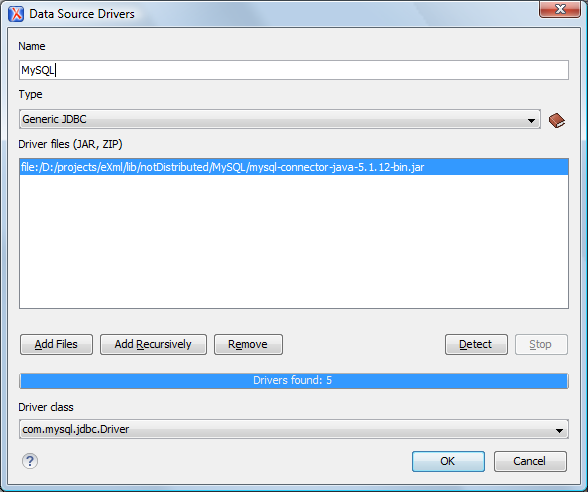 6. Click the Add Files button and select the MySQL driver file that you downloaded.