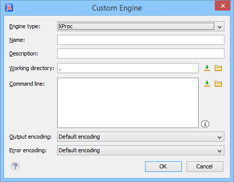 - Error encoding - The encoding for the error stream of the XProc engine, used for reading and displaying the messages from the error stream.