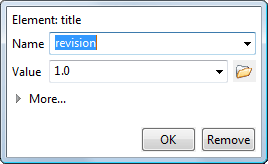 This opens an in-place attributes editor that contains the same content as the Attributes view. By default, this editor presents the Name and Value fields, with the list of all the possible attributes collapsed.