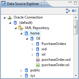 The Oracle database is a common relational type of database system. Oxygen XML Author Eclipse plugin comes with built-in support for the 11g version of the database system. The Oracle database also includes a Oracle XML DB component that adds native XML support. Oxygen XML Author Eclipse plugin allows you to browse Oracle repositories in the Data Source Explorer view, open tables in the Table Explorer view, and perform various operations on the resources in the repository.