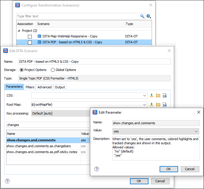 webhelp.show.changes.and.commentsparameter is set to yes.