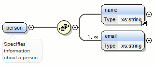 <person>element and chooseperson_typefor the new complex type name, the result is:Figure 10. Extracting a Global Complex Type on a <person>Element
