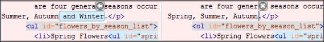 For both two-way and three-way comparisons, Oxygen XML Developer automatically performs a second-level comparison for the Lines, XML Fast, and XML Accurate algorithms. After the first comparison is finished, the second-level comparison for the Lines algorithm is processed on text nodes using a word level comparison, meaning that it looks for identical words. For the XML Fast and XML Accurate algorithms, the second-level comparison is processed using a syntax-aware comparison, meaning that it looks for identical tokens. This second-level comparison makes it easier to spot precise differences and you can merge or reject the precise modifications.