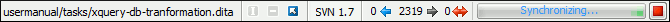 The status bar of the Syncro SVN Client window displays important details of the current status of the application. This information is available only in the Working Copy view.