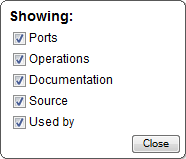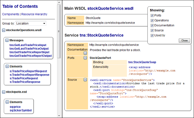 After the documentation is generated, you can collapse or expand details for some WSDL components by using the Showing options or the Collapse or Expand buttons.