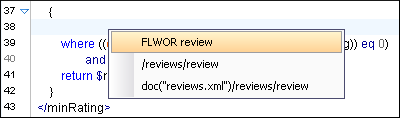 You can use the XQuery Input view to drag and drop a node into the editing area to quickly insert XQuery expressions.