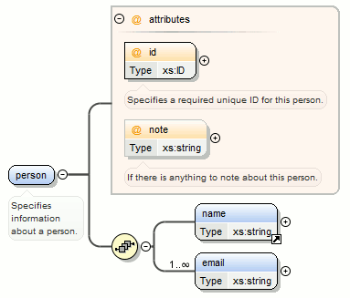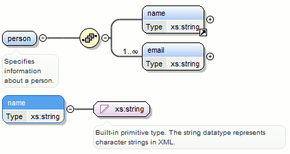 <person>element and chooseperson_typefor the new complex type name, the result is:Figure 10. Extracting a Global Complex Type on a <person>Element