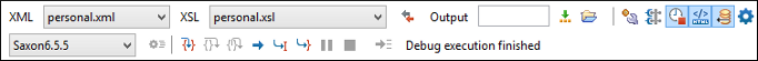 - The current selection represents the stylesheet or XQuery document to be used by the transformation engine. The selection list contains all open files (XSLT / XQuery files being emphasized).