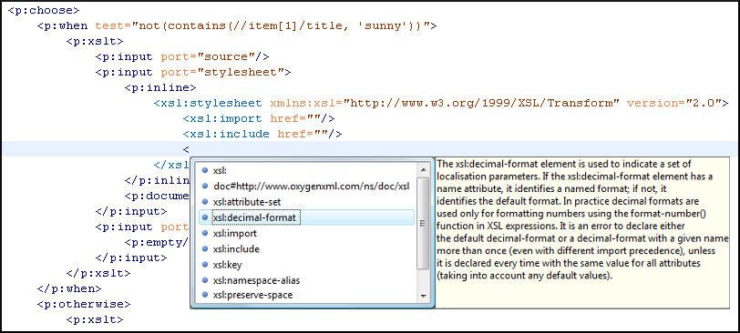 <inline> XProc element, the list of content completion proposals is