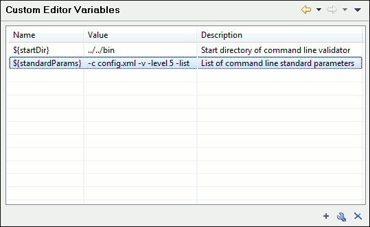 An editor variable is useful for making a transformation scenario, validation scenario, or other tool independent of its file path. An editor variable is specified as a parameter in a transformation scenario, validation scenario, or command line of an external tool. Such a variable is defined by a name, a string value, and a text description. A custom editor variable is defined by the user and can be used in the same expressions as the built-in editor variables.