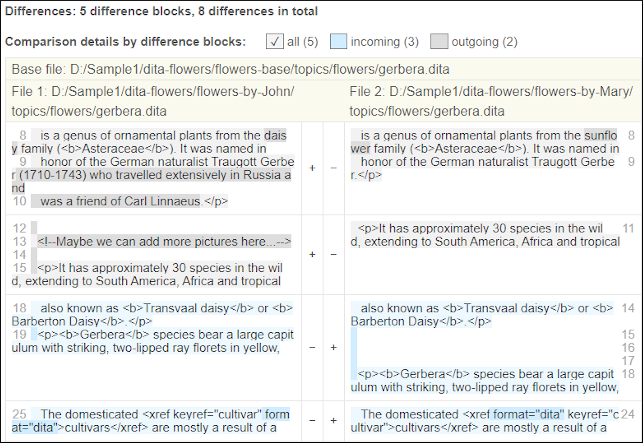 sh scripts/compareFiles file1 file2 -ins -inp -ind -out xml > results.xml - Example 2: Compare Files with Line by Line Algorithm