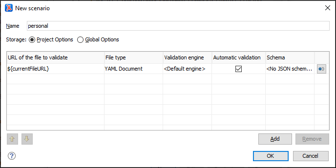 - For YAML documents, the built-in YAML Validator engine (Default engine) is used.