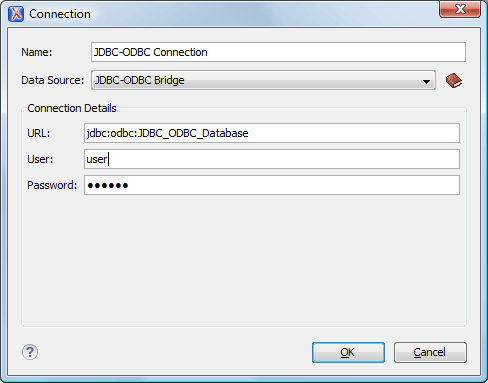 Select JDBC-ODBC Bridge in the Data Source drop-down