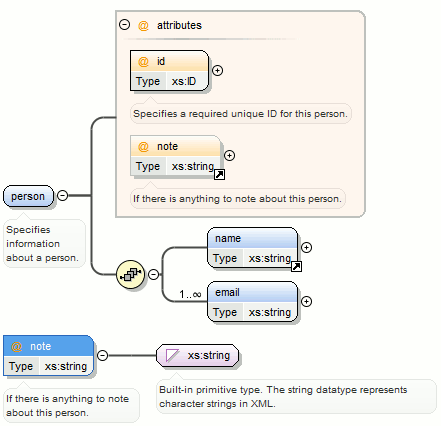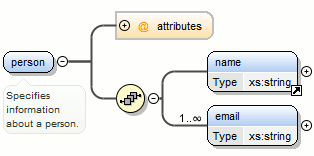 <person>element and chooseperson_typefor the new complex type name, the result is:Figure 10. Extracting a Global Complex Type on a <person>Element