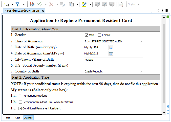 Author mode. When a JSON document is opened in