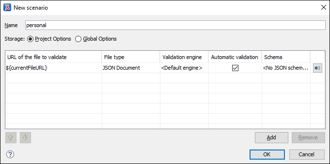 - You can choose between storing the scenario in the Project Options or Global Options.