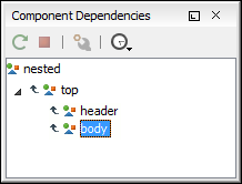 The Component Dependencies view allows you to see the dependencies for a selected component. This is helpful if you want to see where components are used in the entire hierarchy. For example, if you want to find all the references where a given component is used.