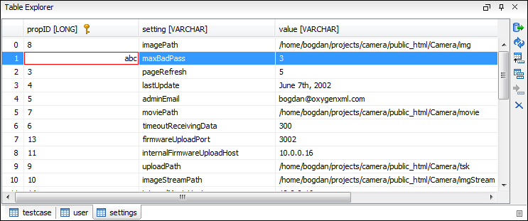 If the content of the edited cell does not belong to the data type of the column, the cell is marked by a red square and remains in an editing state until a correct value is inserted. For example, in the following figure