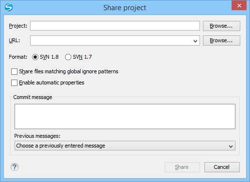 - The SVN format of the working copy. You can choose between SVN 1.8 or SVN 1.7.