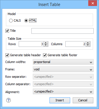When you click Insert, a CALS table is inserted into your document at the current cursor position.