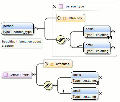 <person>element and chooseperson_typefor the new complex type name, the result is:Figure 10. Extracting a Global Complex Type on a <person>Element