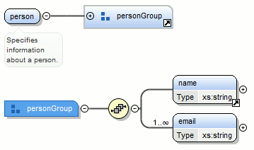 <sequence>element, the Extract Global Component dialog box is displayed and you can choose a name for the group. If you typepersonGroup, the result is:Figure 6. Extracting a Global Group on a <sequence>Element