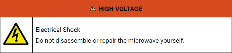 <howtoavoid>Do not disassemble or repair the microwave yourself.</howtoavoid>