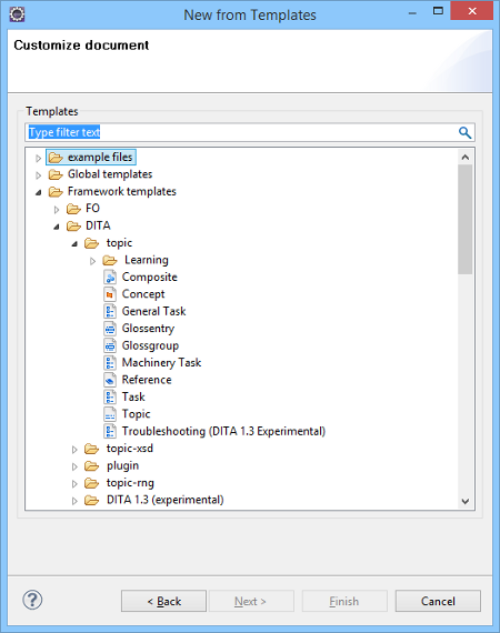 Figure 1. New DITA Document from Templates Wizard
