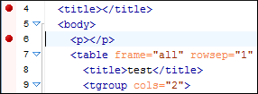 - Click the line where you want to insert the breakpoint in the XML source document or the XSLT/XQuery document. Breakpoints are automatically created on the ending line of a start tag, even if you click a different line.