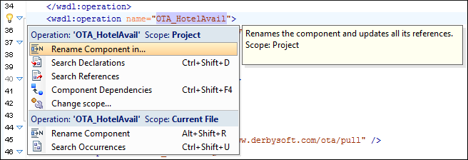 Declarations- Searches the declaration of the component in a predefined scope. It is available only when the context represents a component name reference.