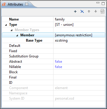 XML Schema Attributes View