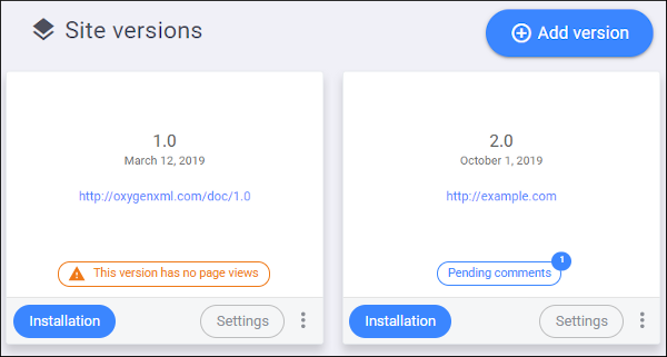configuration. Each version for a site configuration is displayed as a tile. Each tile
