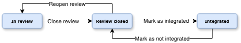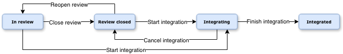 A Project Review Task can have one of the following workflow statuses: In review, Review closed, Integrating, or Integrated.