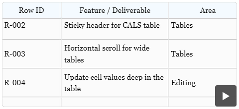 Work with Large DITA Tables Using Sticky Headers